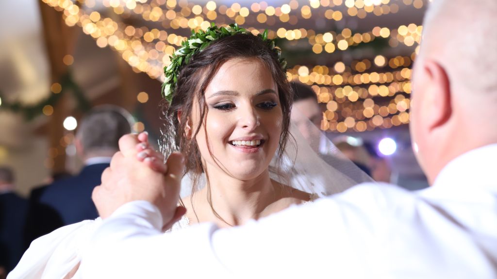 Dwie lustrzanki Canon w pełnej klatce, szelki naramienne, 3-4 lampy błyskowe wyzwalane zdalnie, rozstawiane w rogach sali na statywach